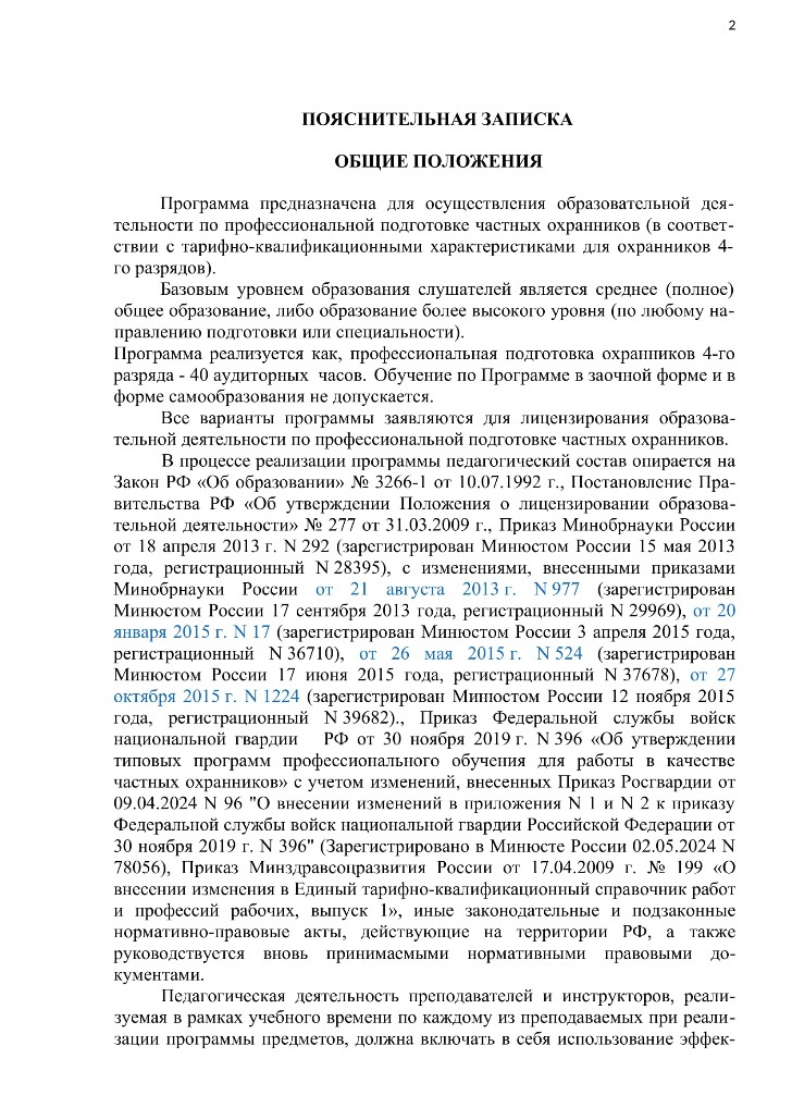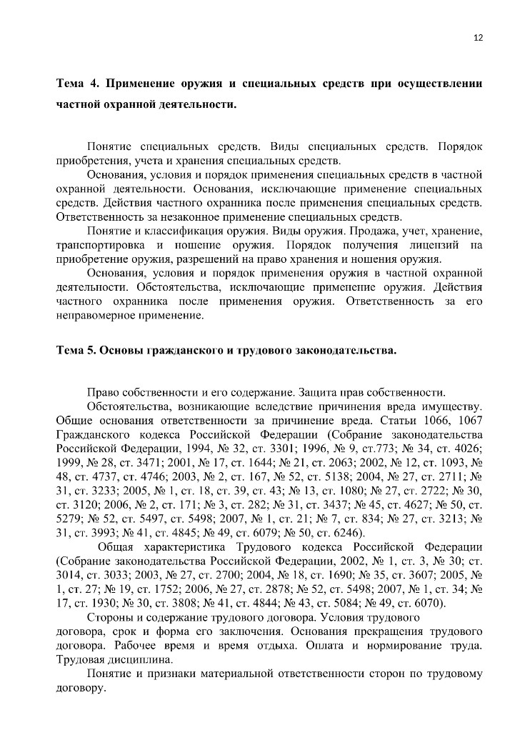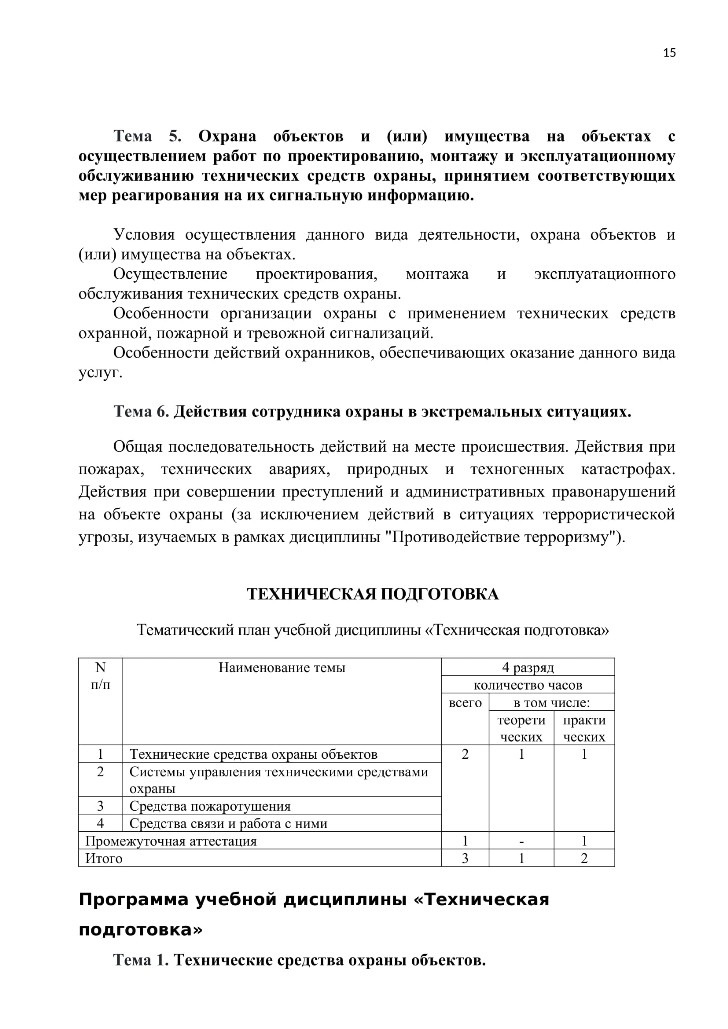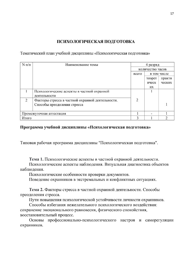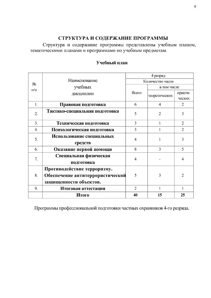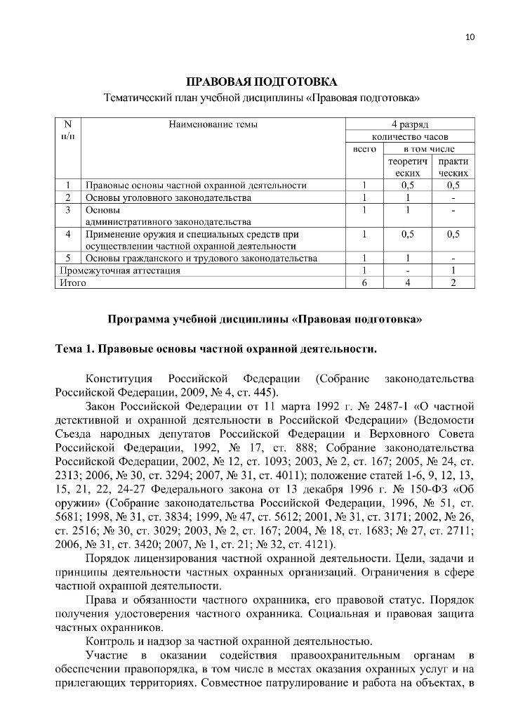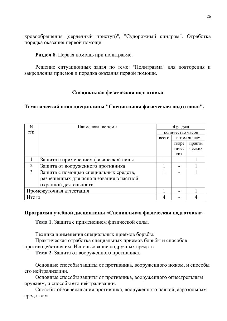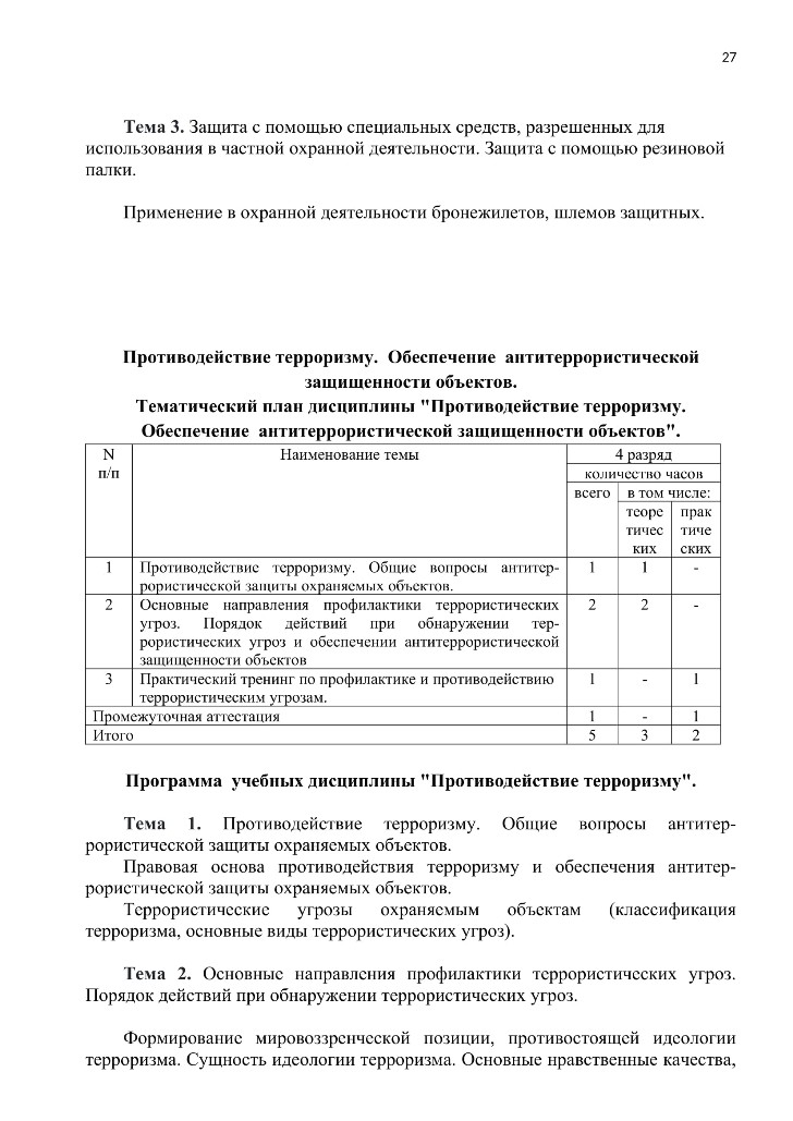 Учебная программа "По профессиональной подготовке частных охранников 4 разряда"