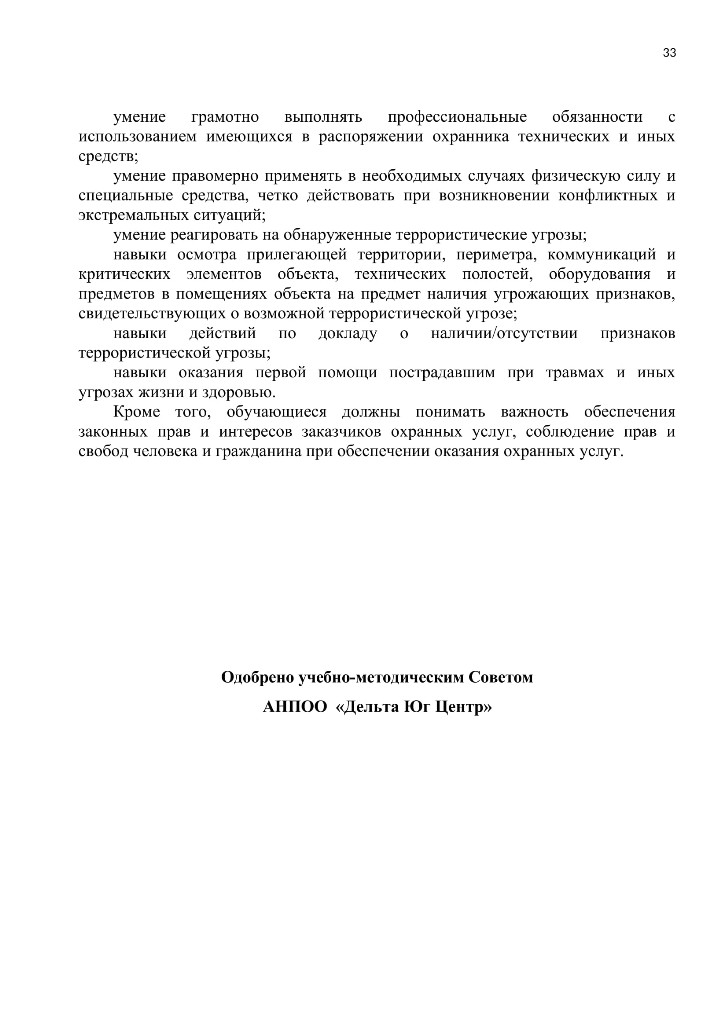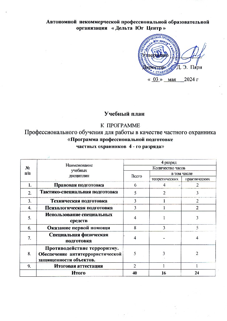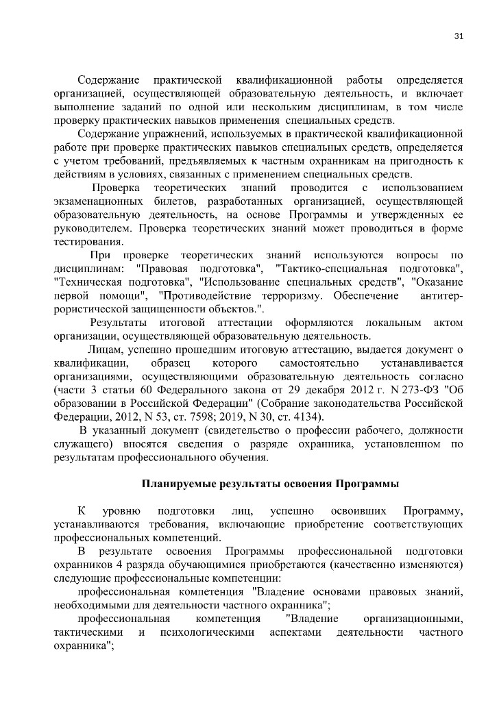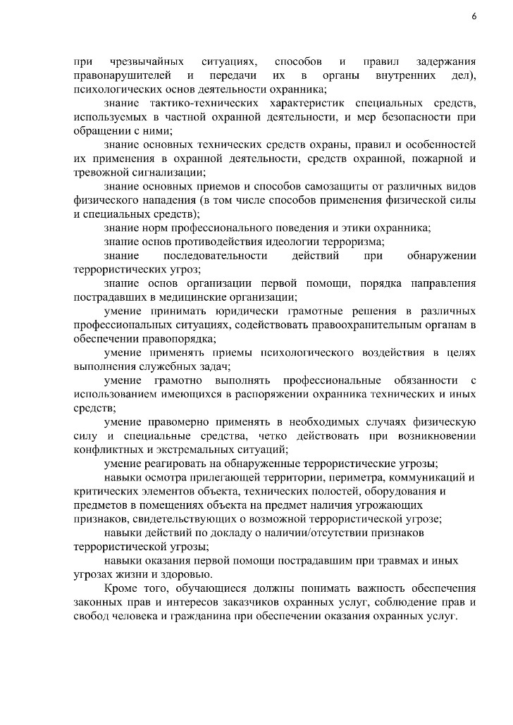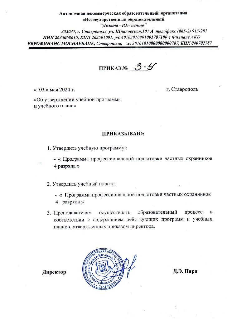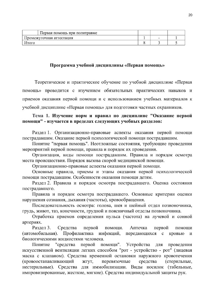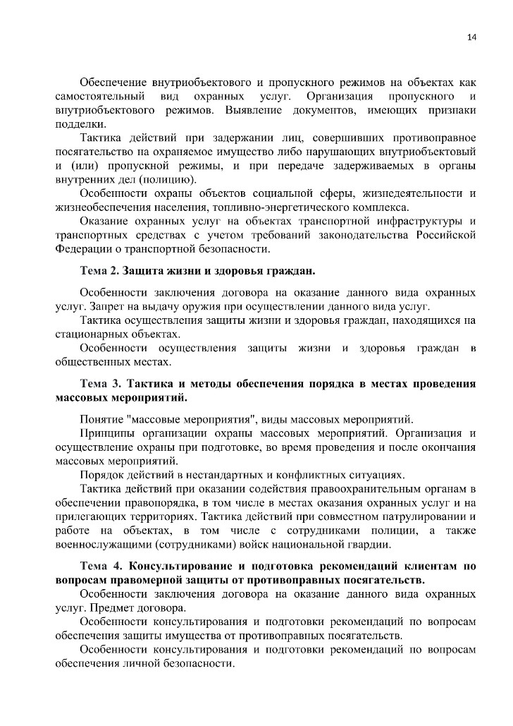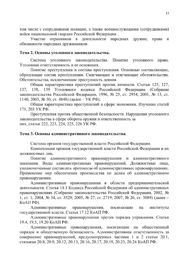 Учебная программа "По профессиональной подготовке частных охранников 4 разряда"